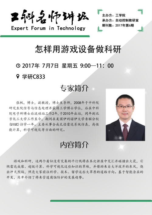 工学名师讲坛第六期:怎样用游戏设备做科研